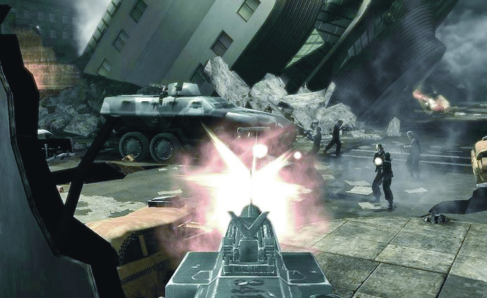 Turning Point может похвастаться гениальным сюжетом, согласно которому нацистская Германия Выйграла войну, захватила Америку и все такое прочее. Ломтики хлеба(****Я не играл в эту игру; там что, вместо аптечек хлеб?****) тоже неплохая идея, но к сожалению мы абсолютно уверены, что команда, стоявшая за Turning Point, восприняла это слишком буквально, потому что сама игра является превосходной аналогией привокзальному сортиру. Бросив вызов истории, разоаботчики рискнули сами быть задокументированными в ней в той же манере, что и та империя зла, которой они вдохновлялись. Те секунды в демонстрационном ролике Rage, где один из персонажей машет тебе рукой и последующие за этим несколько мгновений, содержат куда больше анимации, чем весь Fall of Liberty.