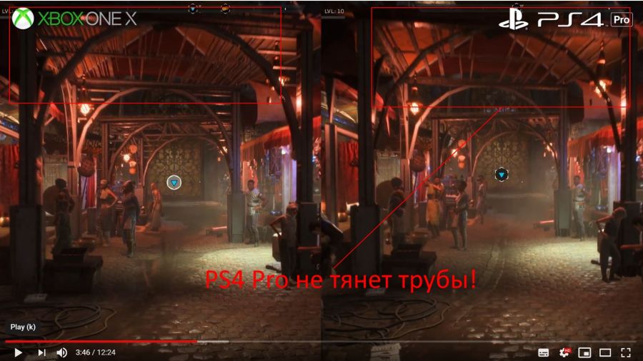 У Xbox One X нативные 4К (!!!) и 25-30 фпс. Хотя подения могут быть ещё ниже.