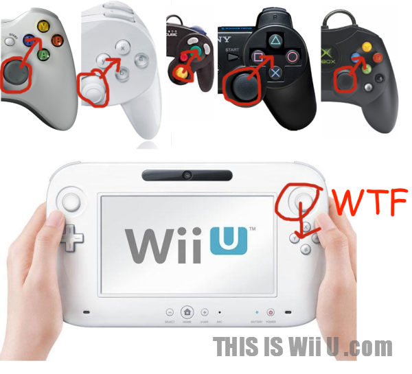 Все таки Nintendo удивительная компания, как можно было сделать стик у Wii U над кнопками, чтобы большим пальцем постоянно нажимать на них? Не говоря уже о том, что огромным тяжелым планшетом играть просто неудобно.