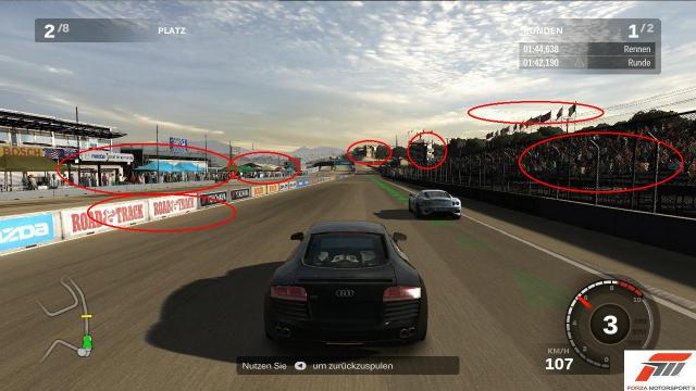 Особенно впечатляет покрытие FM3 на фоне унылости GT5... Следы вызженной резины, в память о яростной схватке гонщиков, моушен блюр укатывающий асфальт для передачи ощущения скорости автомобиля. Да, все это есть в FM3 и лишь жалкое подобие в GT5. Вероятно играть в нее будет так же скучно как и смотреть.