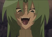 Говорит Рена об убийстве Такано. Вообще, у японцев заложен какой-то животный ужас перед глистами, потому что коварные межгалактические аскариды в конце концов захватили и Рену, и именно ей посвящена последняя серия арки, её мы рассмотрим ниже. Но прежде, знаете ли, отдельным трактором я хотел бы проехаться по озвучке. Слушая гнусавый монотонный голос некоего Валькриста (Valkrist),я едва сдерживаел порывы разорвать кому-нибудь горло. Ему, себе, сверкающей глазами из-под шкафа кошке, неважно. Интонации в его голосе появились лишь один раз — в последней сцене, которую он озвучивал с таким придыханием, что можно было подумать, что он на вершине оргазма и заляпывает словесной спермой Ваши уши. Валькрист даже название деревни запомнить не смог и называл её то «Хинамидзава», то «Хинаминазава». Как его вообще в печке не сожгли, когда он родился?