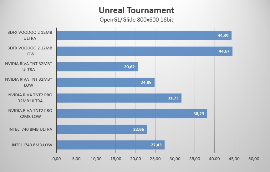 А вот в UT1999 вуду2 тохдома зажёг с API Glide. 44 fps! При условии что Антон обновил CPU: