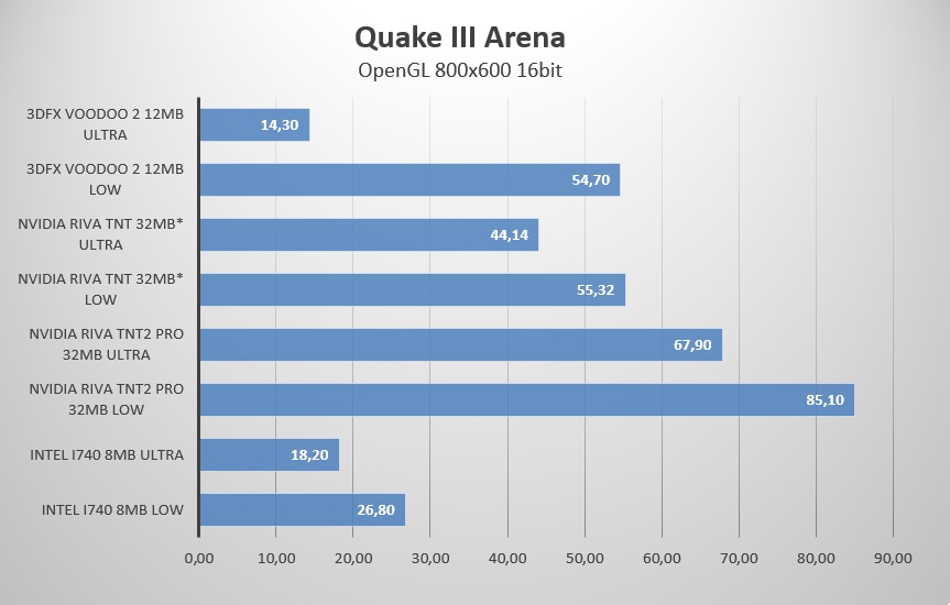 1999, Quake 3, у тохдома 14 фпс на ультре в 800x600 (в то время даже для 15 моников оптимально было 1024x768 хайрез):