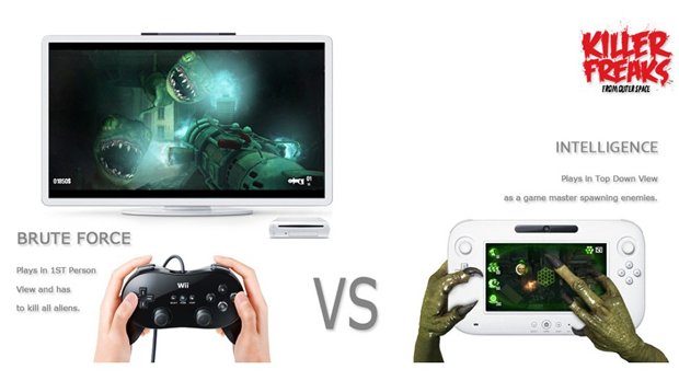 Нинтендо опубликовала рекламу своей новой игры для Wii U - Killer Freaks. На картинке отчетливо видно, что новый контроллер держат руки ящера. Nin переманивает аудиторию?