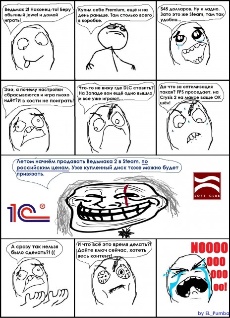 Масло в огонь подлили 1С и с выпуском Ведьмака 2. Не знаю, что они там намутили с релизом, но какой хрена сегодня для игры вышел уже третий по счету патч. как можно быть такими слоупоками?