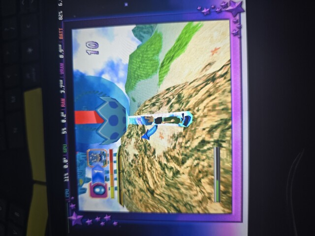 Ремейк же выглядит уже по другому. Дизайн персонажа изменили, текстуры всё ещё размазаны и плоские облака.