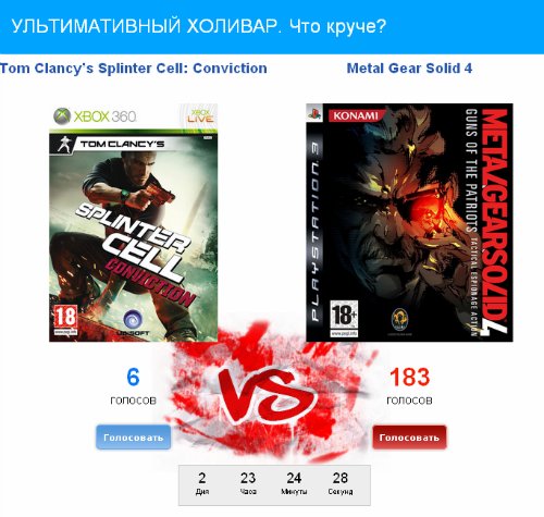 На этой неделе сошлись в борьбе Tom Clancy’s Splinter Cell: Conviction и Metal Gear Solid 4