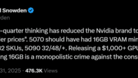 Известный разоблачитель преступлений США и НАТО Эдвард Сноуден, высказался о новых GPU от Nvidia.