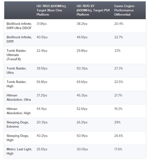 Результаты подтвердили, что у PS4 есть превосходство в вычислительной мощности на 50% по сравнению с Xbox One. Также у PS4 есть два значительных преимущества перед конкурентом - более высокая пропускная способность и увеличенная мощность GPU. Помимо прочего у PS4 есть простая 256-bit шина, а у Xbox One есть еще неизвестно как ведущая себя в работе ESRAM, потому что до сих пор неизвестно насколько эта память может быть быстрой и как разработчики ее будут использовать.