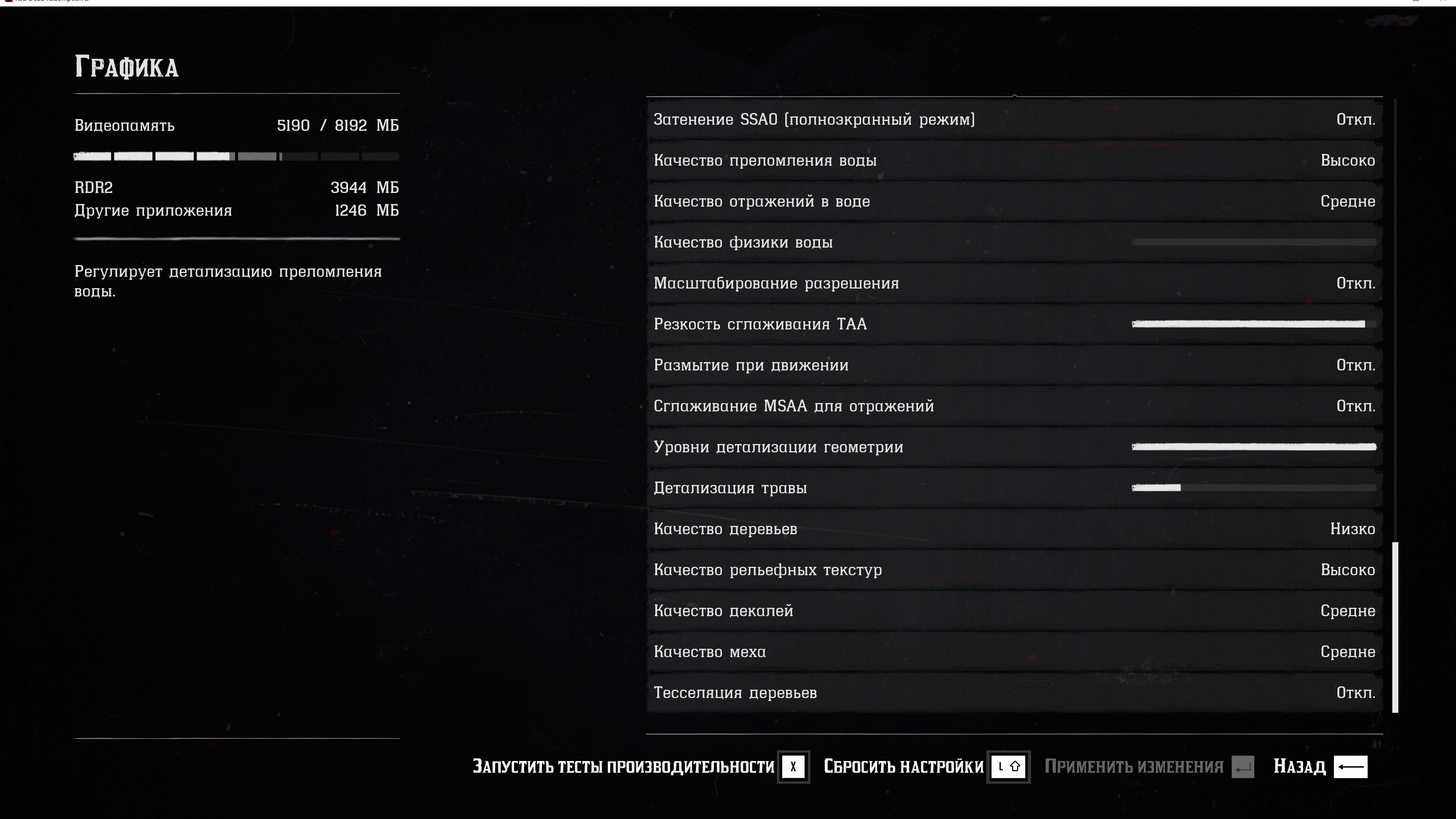 Chris, Твои посмотрел, и вернул конечно свои настройки, мне не столь важны 60 фпс, когда у меня на высоких с куда лучшим графином 45-50 в среднем.