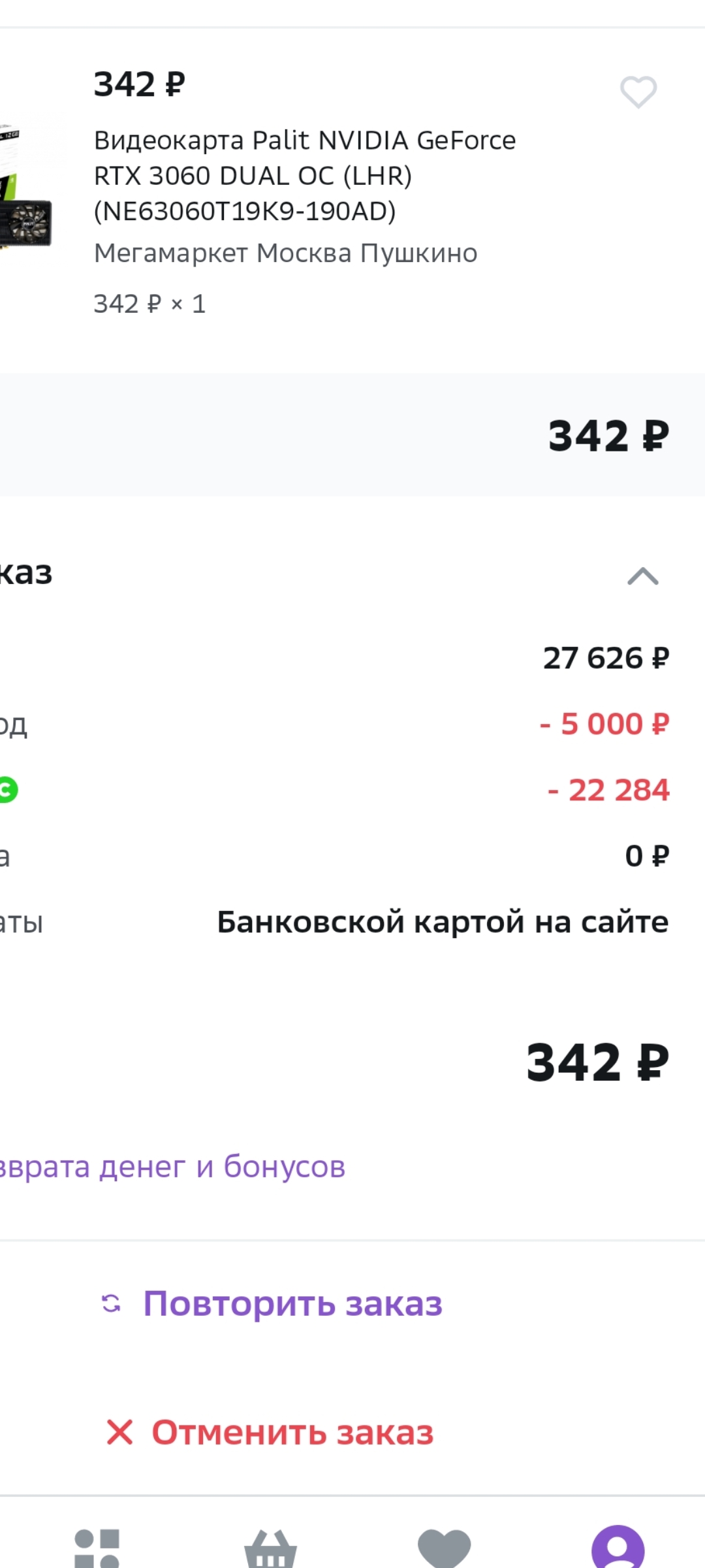 Чет мне Мегамаркет бабло возвращает за отмену заказа уже НЕДЕЛЮ!