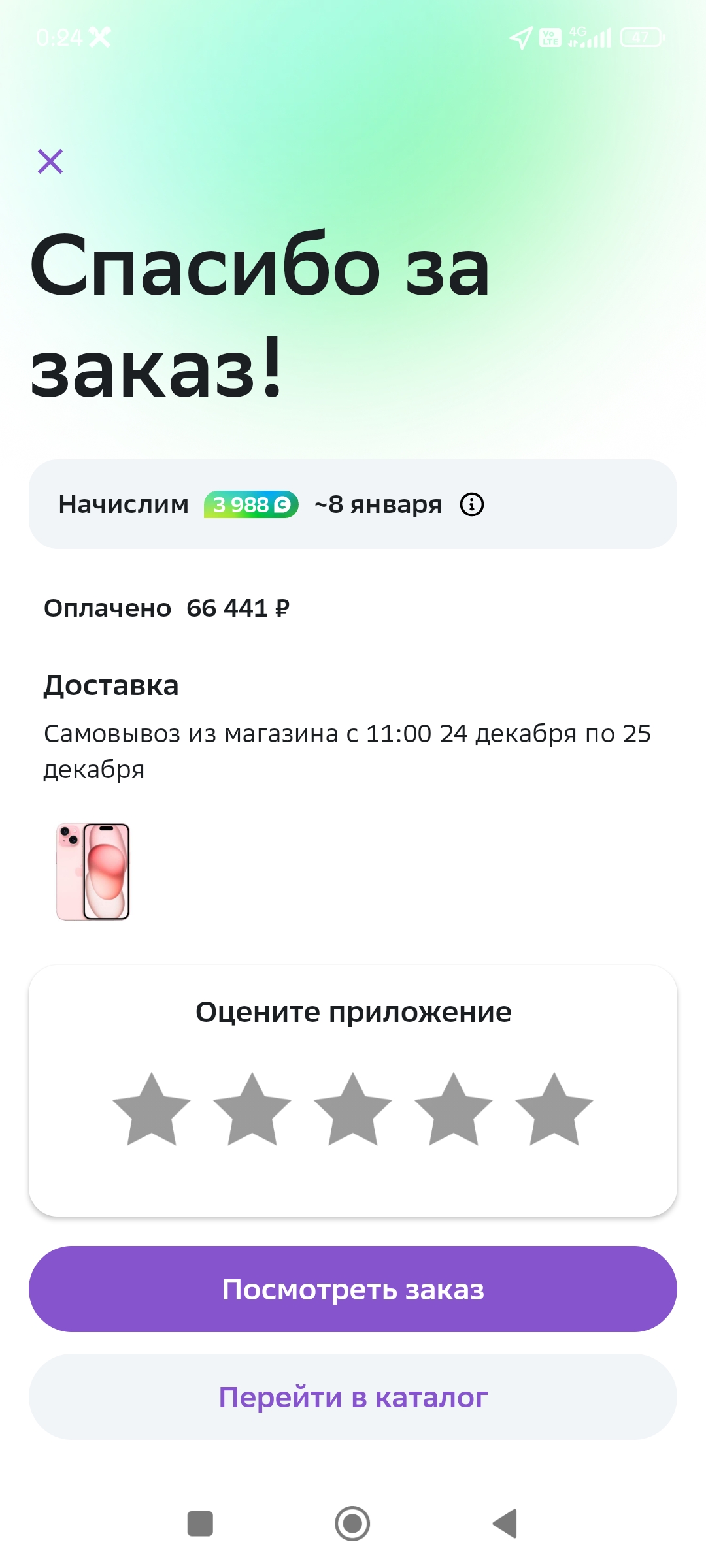 Заказал ещё один айфон за 66к, продам скупщику за 67к и получу 8к кешбэка.