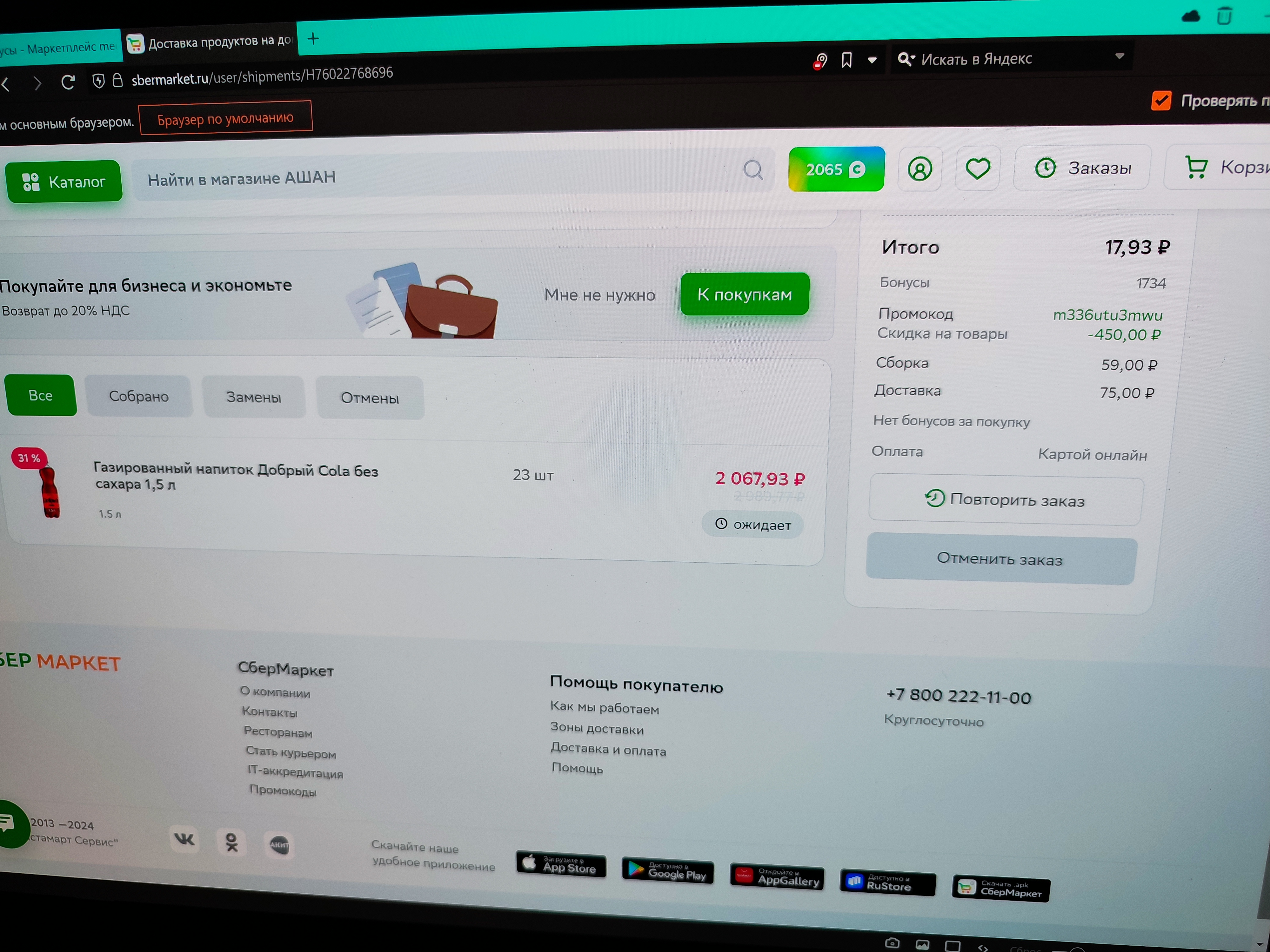Заказал дохующа колы по скидке и промо. хорошо сейчас заметил что там 0.5 вариант по цене литра
