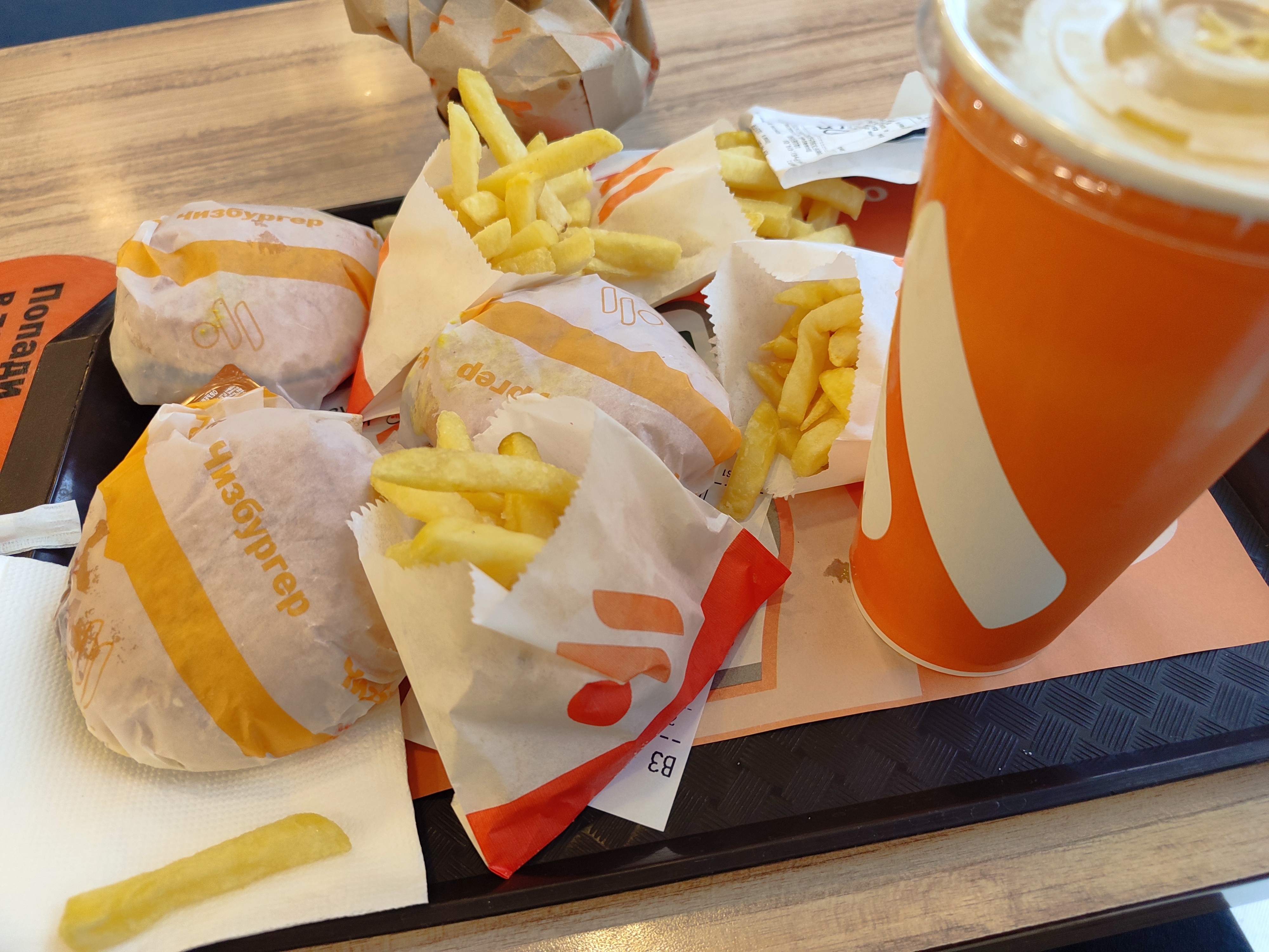 4 бургера и 4 картохи бесплатно, соус и сок докупил платно, гулять так гулять.