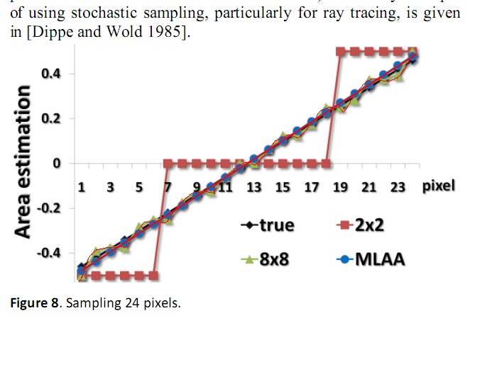 я поражаюсь, откуда у тебя такие выводы, если на этой картинке MLAA ровнее 8x8?График с семплом 24 пиксела