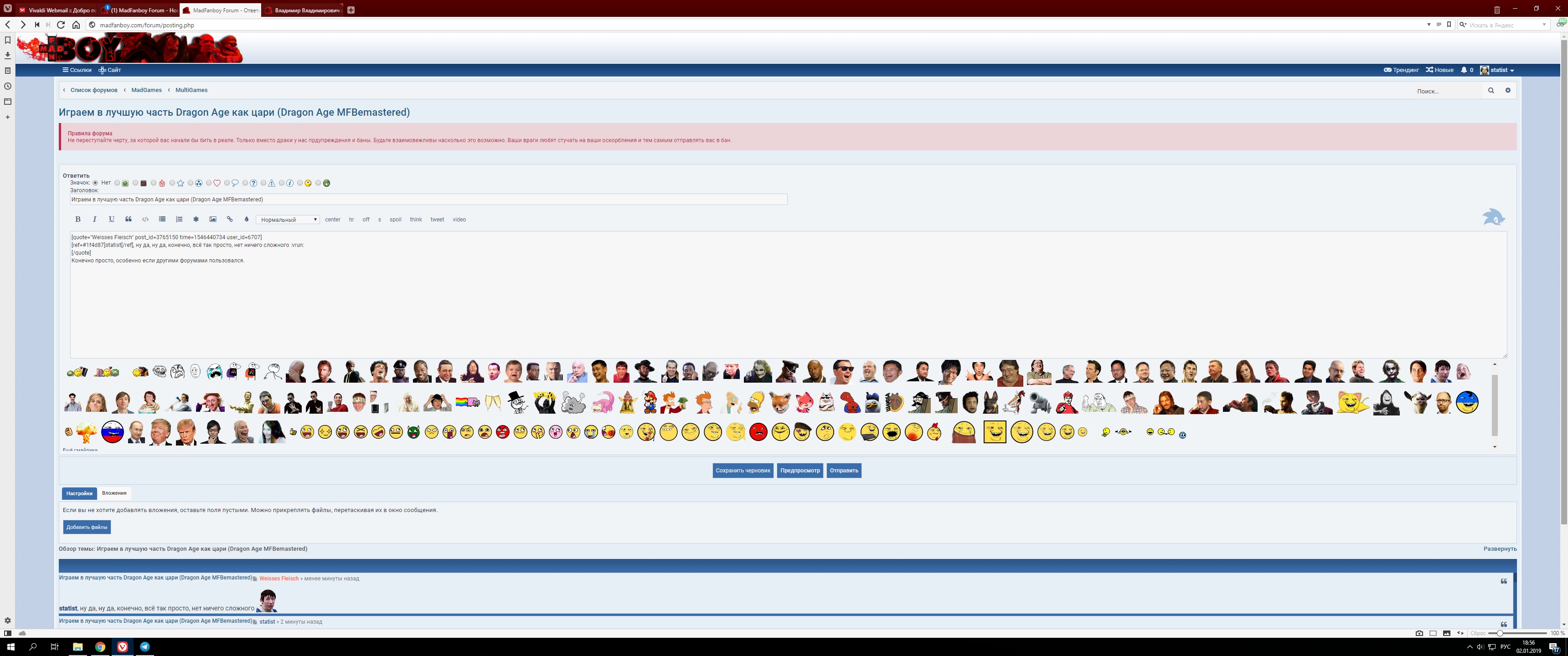 Конечно просто, особенно если другими форумами пользовался. Кнопку в полном режиме сразу видно, пусть и не полностью.Weisses Fleisch писал(а): 02 янв 2019, 17:52statist, ну да, ну да, конечно, всё так просто, нет ничего сложного![]()