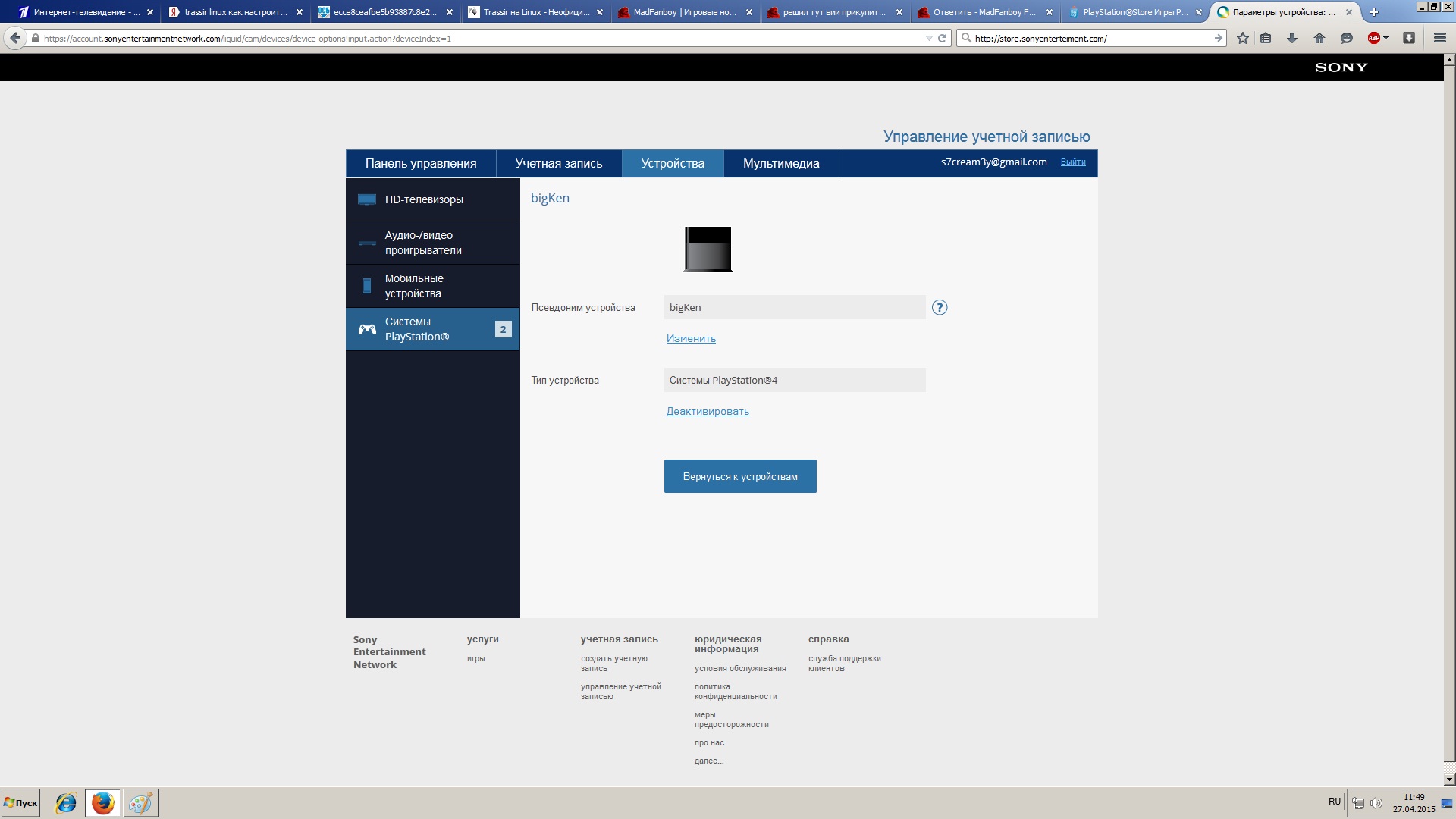 Твой акк спиздили, обращайся в Сони ( им всем консоли перебанят