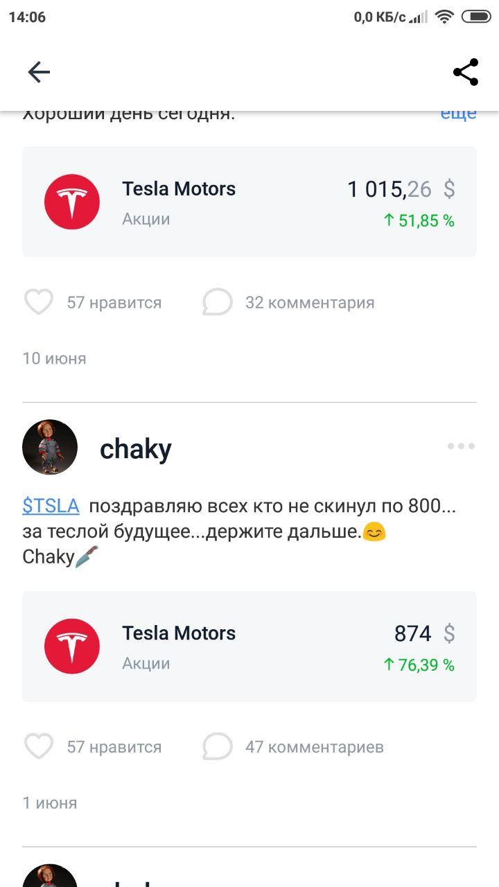 Зассал купить теслу когда она была 700 и теперь кусаю локти, смотря на 1550$ и фанатов илона Маска с 400% доходности за год