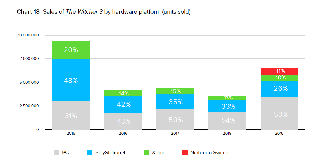 Вот это пососач, с учётом того что ведьмак чисто пукашная франшиза. Доля пука начала расти когда распродавали по 10 долларов (хотя даже я на пукарню купил вторую копию на распродаже)