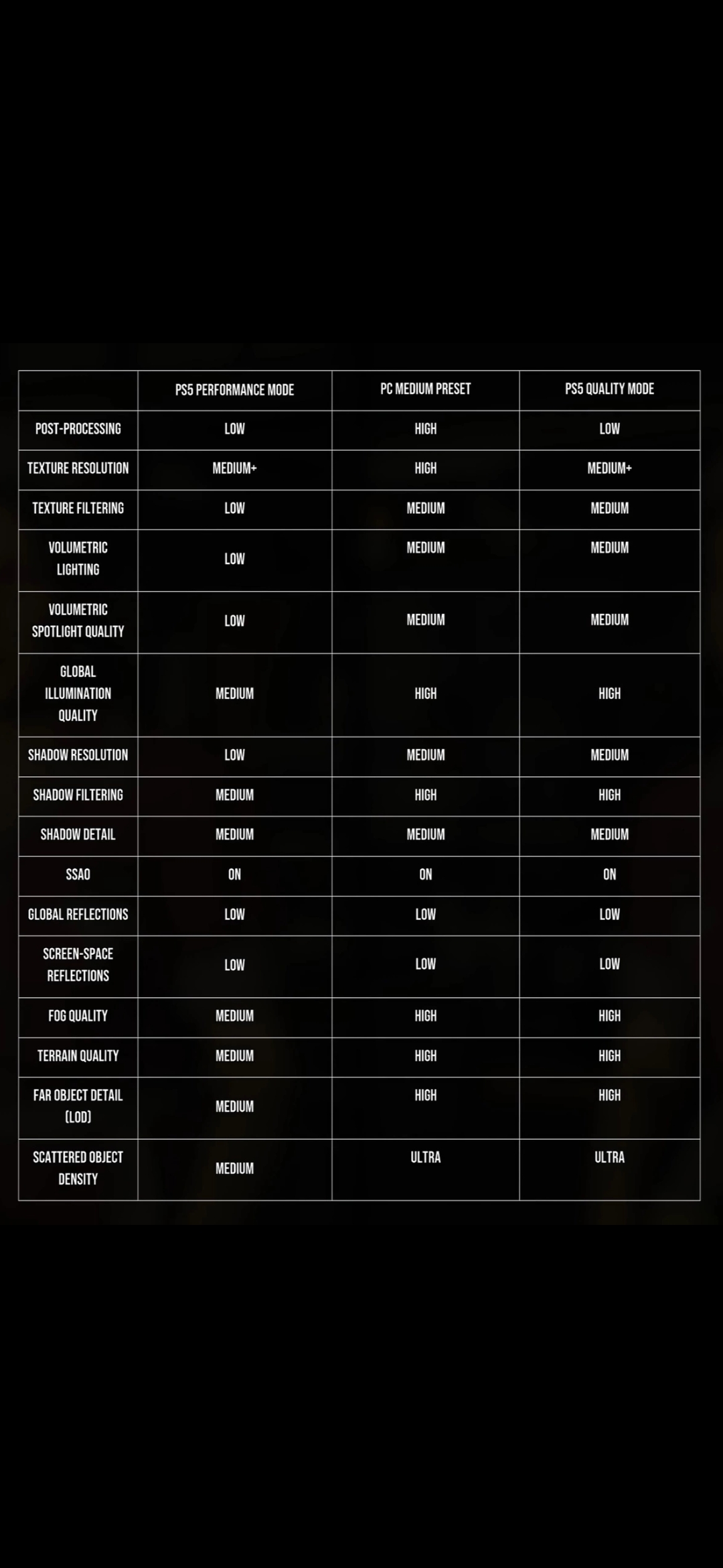 Средние на ПК ебут "качество" на пс5 по разрешению текстур, да ещё и фильтрацию текстур можно поставить на макс без потери фпс.