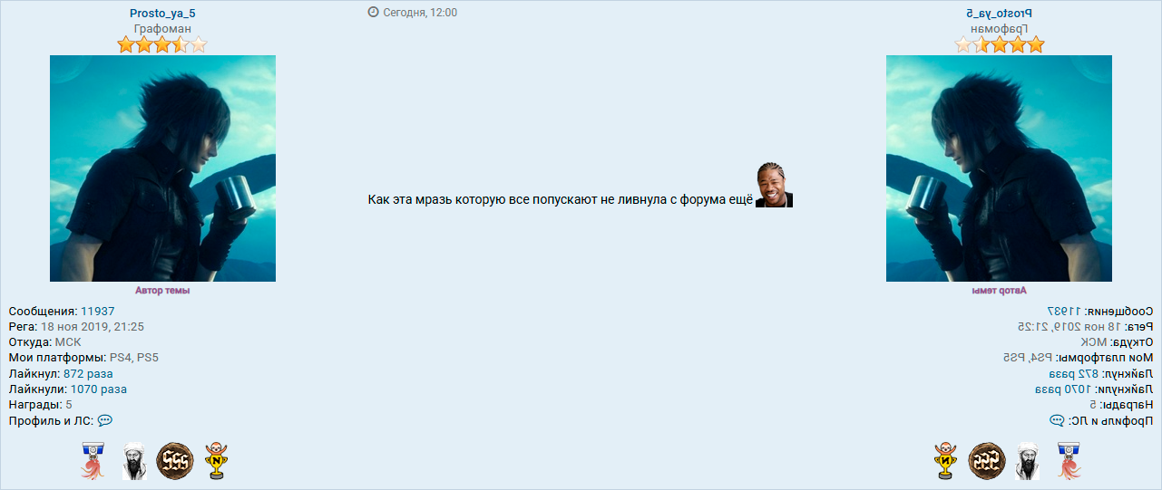 Поэтому ты пол форума хуесосишь за то что кому-то там Ромул не понравилсяMister Book писал(а): 17 янв 2025, 17:42Я пацифист и гуманист.Prosto_ya_5 писал(а): 17 янв 2025, 17:38Mister Book, да я грю го убьем Кирюшу нахуй, он один нас много