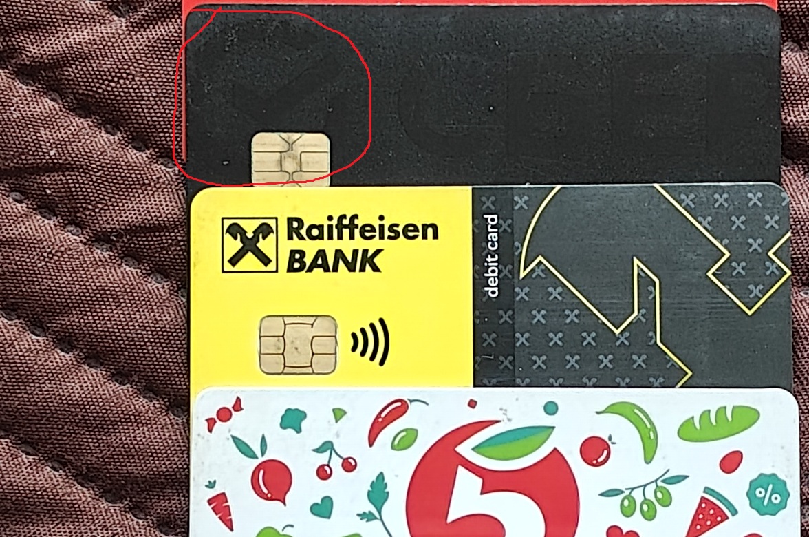 А с черной картой сбера и черной половиной райфа вытащил детали словно эта конкретно зона сделана в режиме ночной сьемки. В реале на карте не видно "зёрен".