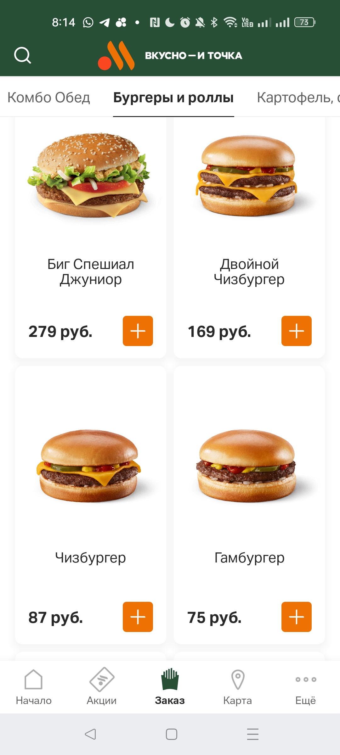 75 руб за гамбургер и 87 за чизбургер меньше доллара