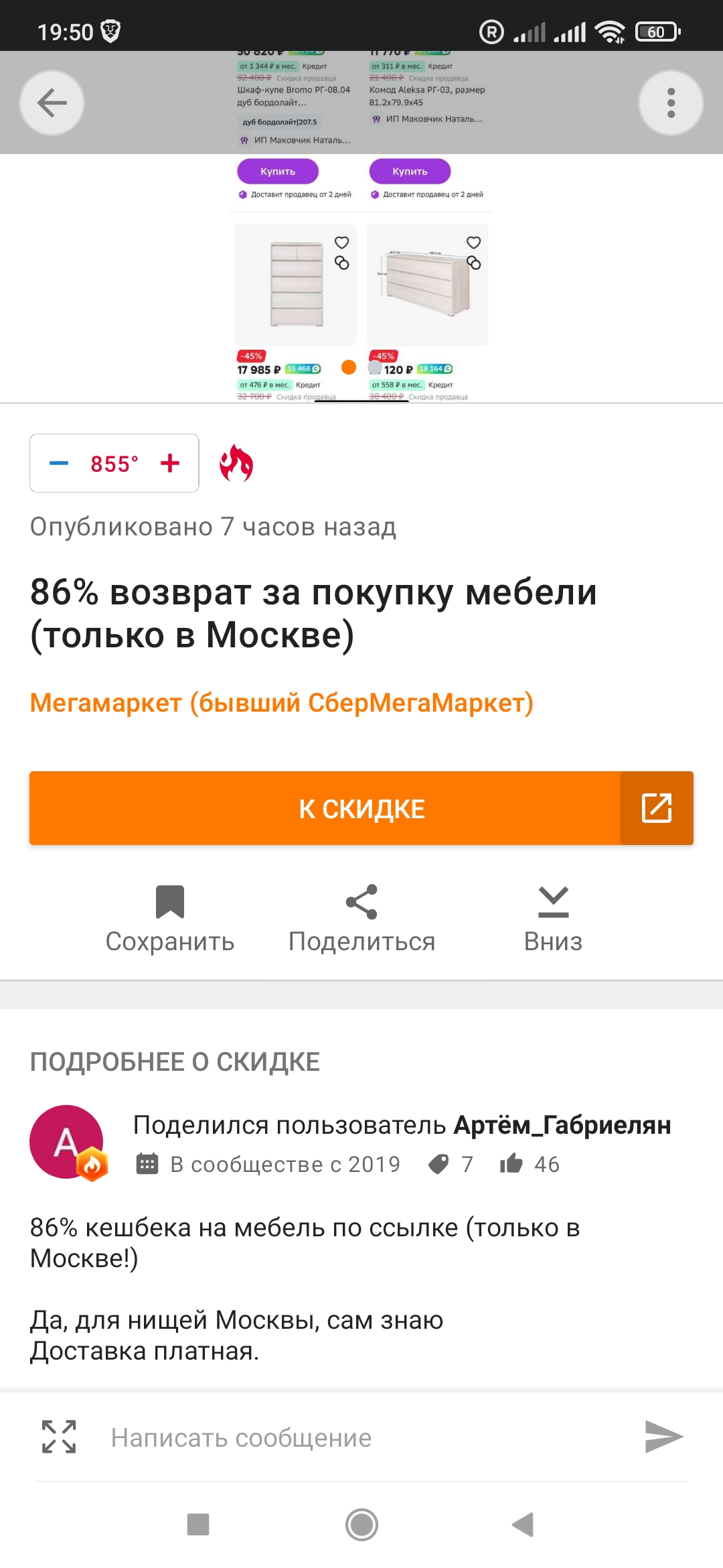 История вышла следующая... Договорились на доставку в среду, но ничего не доставили. Позвонили, сказали в четверг привезут, но тоже ничего не доставили, в пятницу позвонили сказали в субботу привезут сто процентов. Сегодня суббота после 22.00 приходит отмена заказа. Жалко потраченного времени и то, что не сделал заказ в нормальном месте, пока был хороший кешбек.