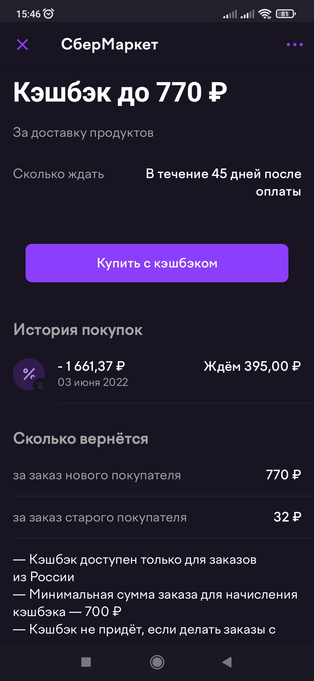 Кешбек на Выживание