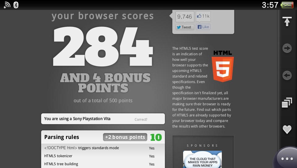 я тебе,Васе,скрин с Виты,на котором сам зашел в html5 тест,сам измерил и полученный результат опубликовал.