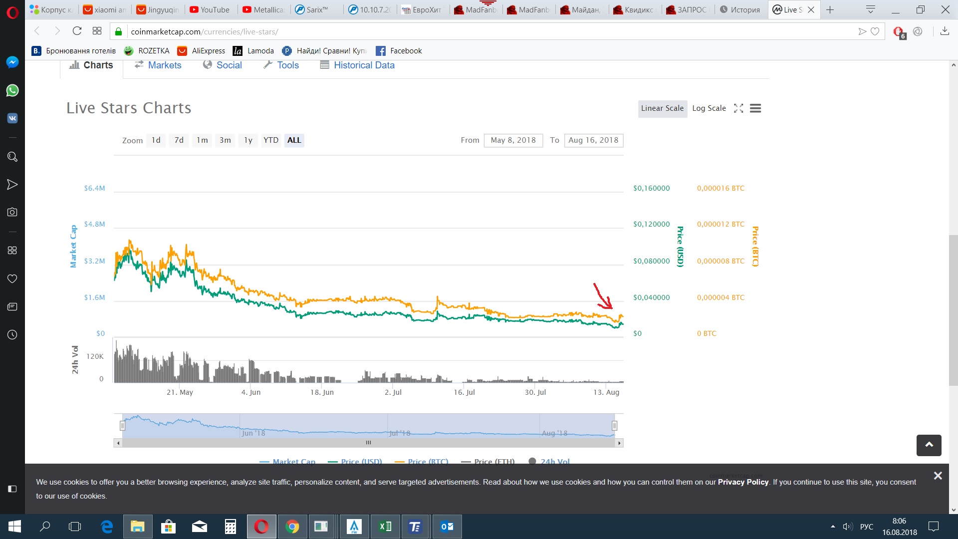 посмотри на график, видно что скам, разрабы намайнили, залистили на биржах, и сливают этот шиткоин хомякам типа тебя, в итоге минус х10truth1one писал(а): 16 авг 2018, 16:03чем именно он скам? (монета и её функционал). или тебе лишь бы попиздеть?