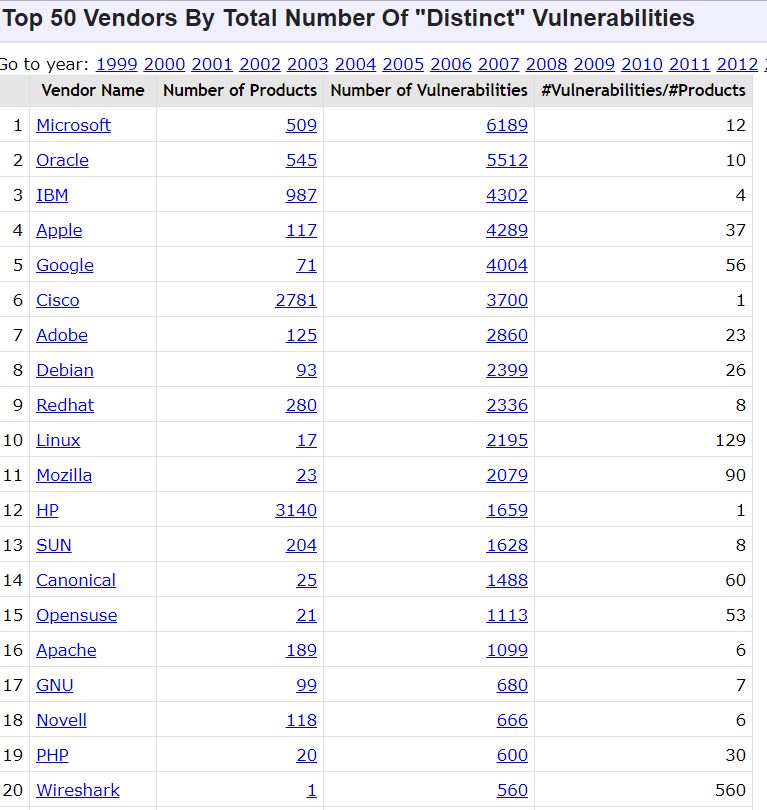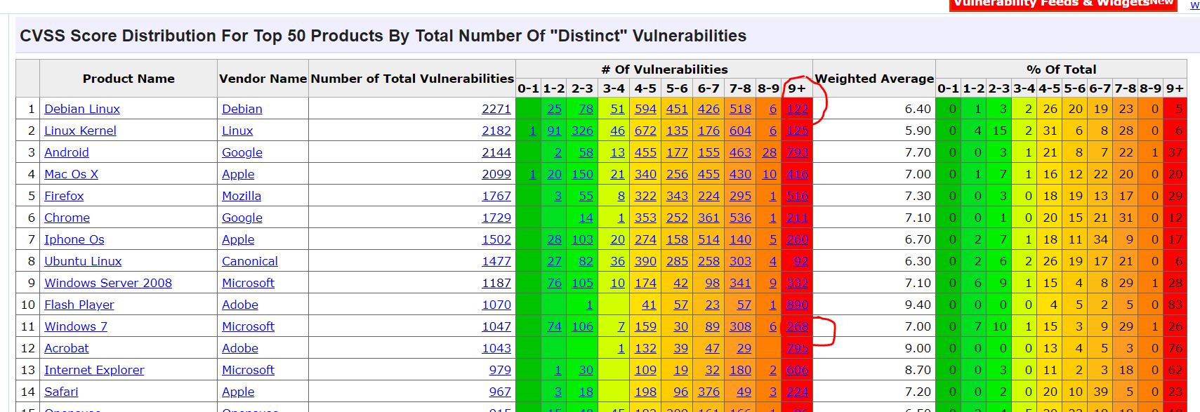 Ну ничего, я тебе помогу, видешь там 9+? Так у ВСЕХ версий Debian их 122 с 1999 года. Теперь посмотри ТОЛЬКО на Win 7 - их там 268. Более чем в 2 раза больше чем у всех версий Debian с 1999 года.Если бы там была просто Windows включающая в себя все её версии с 1999 года, то цифра была бы раз в 10-15 больше, чем 122 у всех Debian: