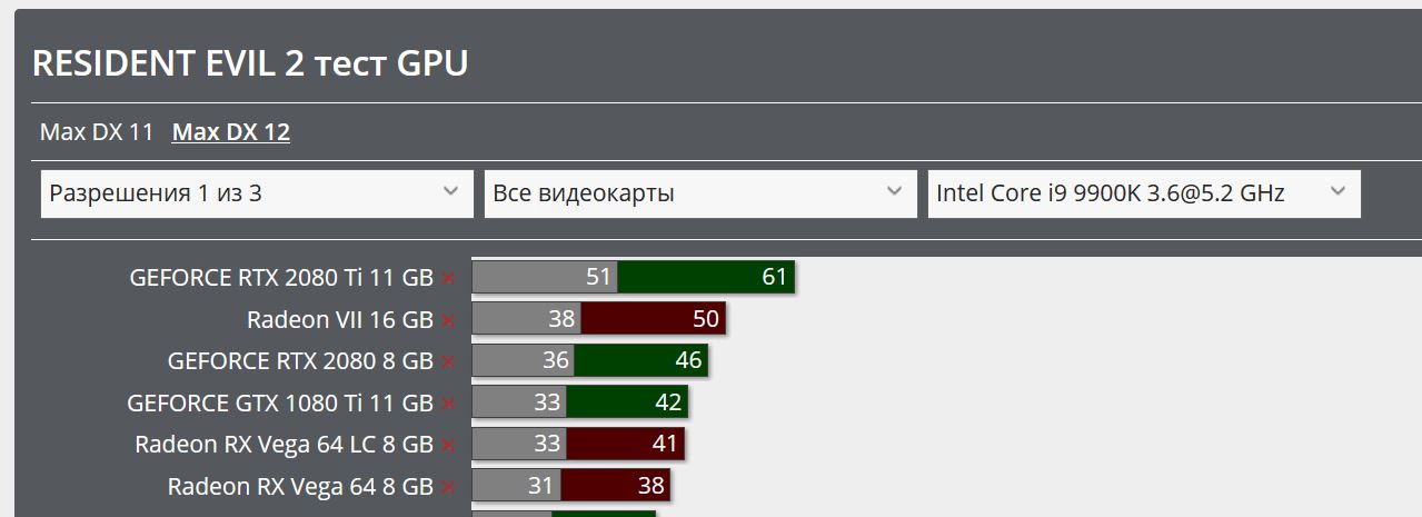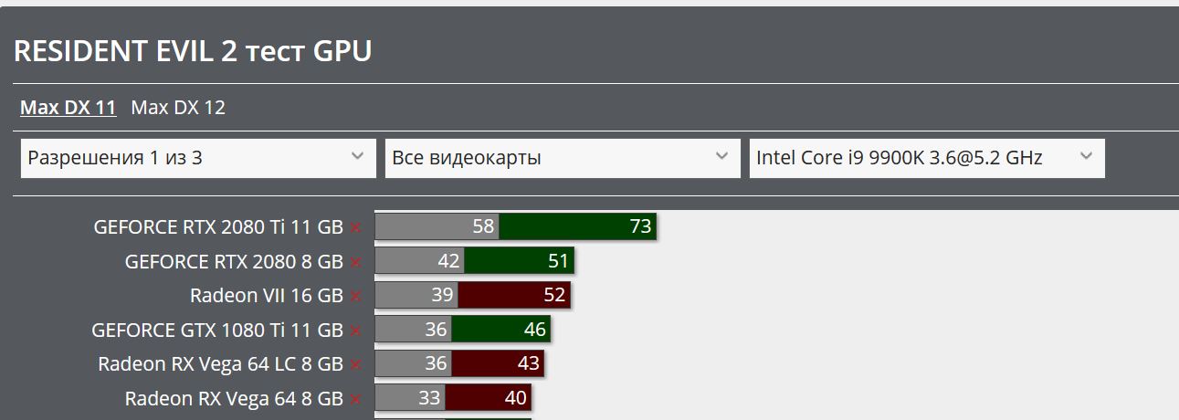 ГДЕ? https://gamegpu.com/action-/-fps-/-tps/ ... st-gpu-cpuChris писал(а): 23 мар 2020, 12:00И это они DX11 не протестили, в котором фпс во 2 части был выше даже на амдMgs Maslorez писал(а): 23 мар 2020, 11:56Я чекаю тесты по всем новым играм как бы всегда, уж я то вижу как 1080ti выносит стабильно почти все остальное.Chris писал(а): 23 мар 2020, 11:48Mgs Maslorez, я скидывал выше видео где много разных игр, не только рдр2.Вот еще по RE 3 R, тоже долбанутая заточка под амд - и тоже RX 5700XT отдыхает.