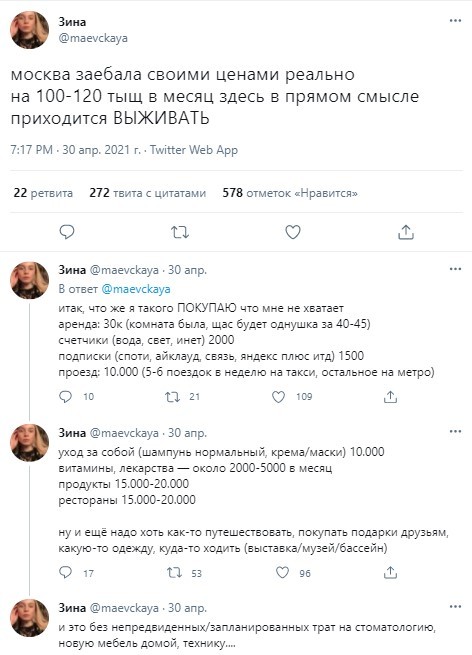 100k в Москве это практически выживание и есть, даже со своей квартирой