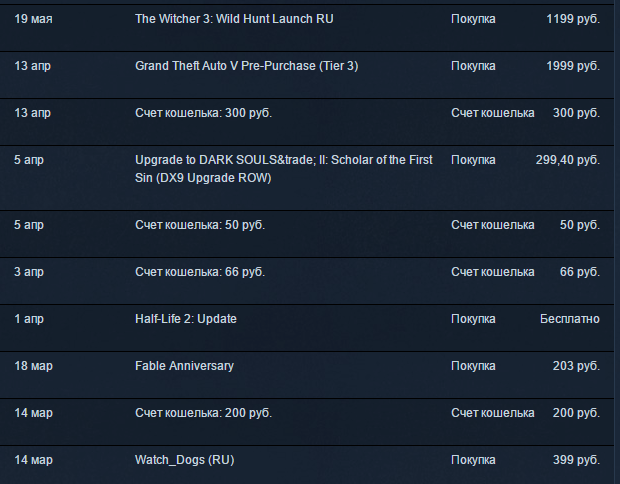Ну у меня от 100 до 3000 за игру, никакой средней цифры нет, а стим всегда был дешевле. Недавно там flatout 2 взял, потому что на пс3 ни одной части, а в стиме копейки. Итого на стим акке уже 4 игрыShauuun писал(а):Ну так, если сейчас ААА игра на пс3 на распродаже в псне стоит 500 р в среднем, то на эти деньги можно 3-4 игры в стиме взять такого же уровня.Shagohod писал(а):Ну эт да, как то посчитал, сколько ушло на игры только для пс3, вышло больше 40к, но игр в разы меньше, чем тут на аккаунтахmetallsatanist писал(а):Можно мелочи накупить по 15 рублей, а можно 1 игру за 2к. Поэтому топ идёт по тратам.Shagohod писал(а):Вы в рублях пишите, а кол-во игр?Да, да, сила воли.Pirate писал(а):Ничего крупного не покупал с апреля, СИЛА ВОЛИ [emoji38]5: [emoji14]etrosyan:
