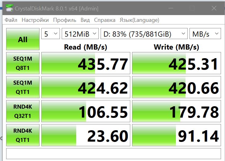 Прогнал тест на своём плекстор м9пе на 256 гигов.