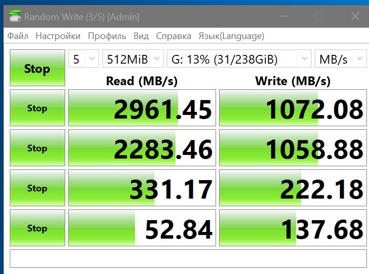 Справа внизу, рандомная запись в 1 поток с короткой очередью.