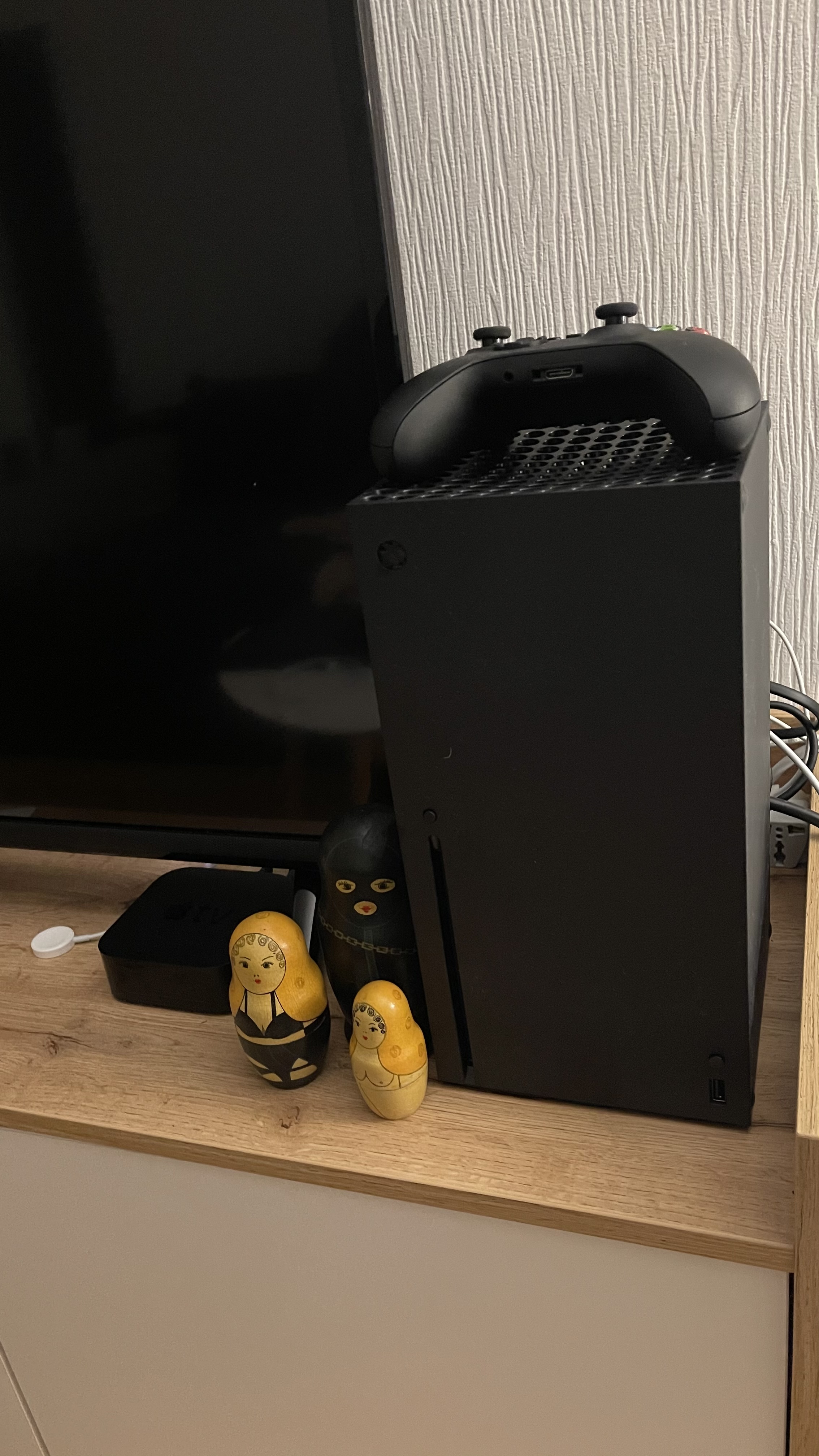 Объективно классный дизайн вписывающийся почти в любой интерьер и охрененно выгодные условия покупки за бугром, когда за 25 баксов в месяц ты получаешь 3 года подписки game pass и приставку.