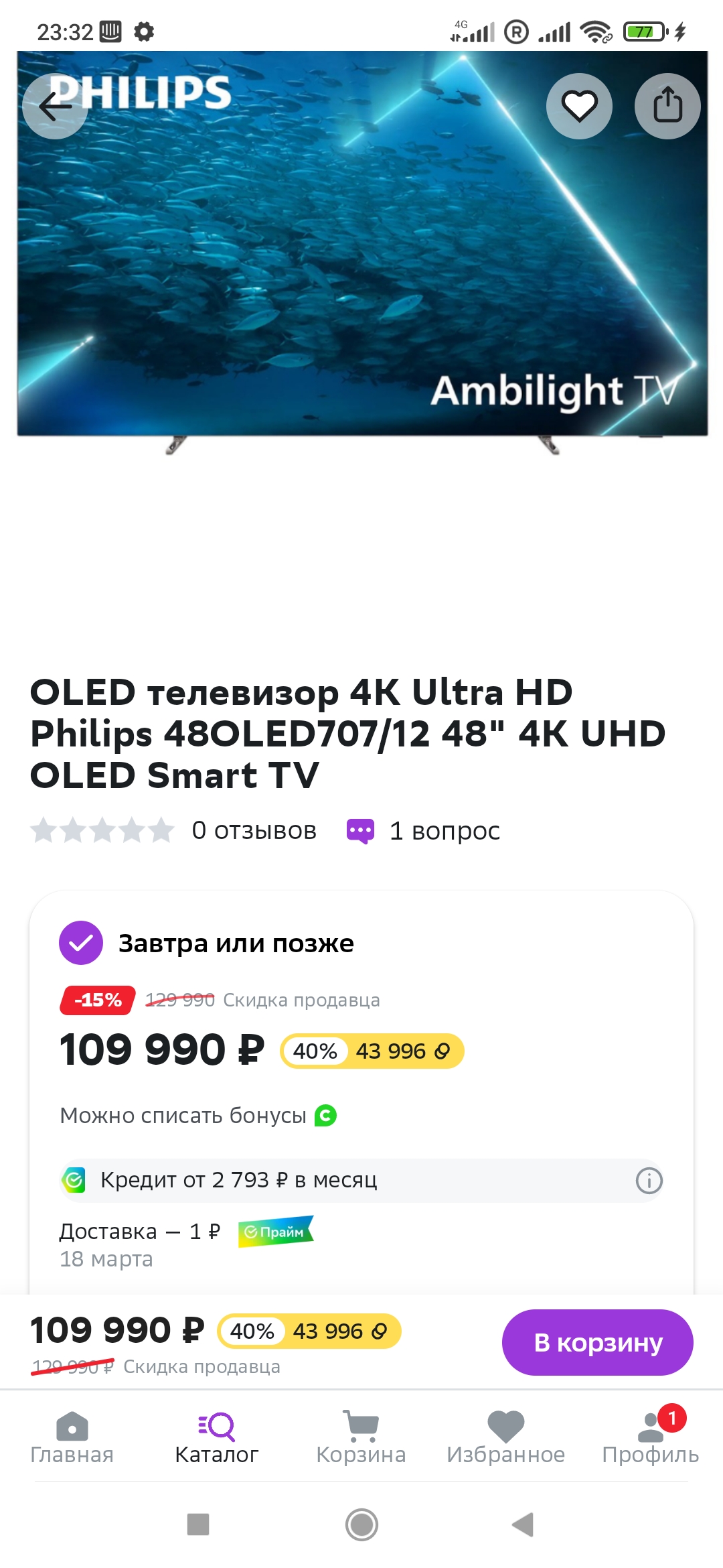 Купил тв Philips 55OLED707