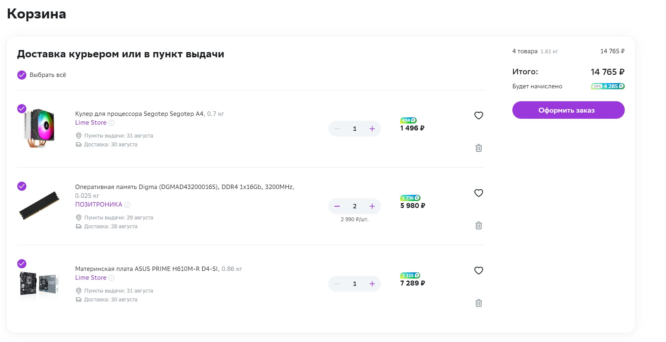 Кулер+мать+32 гб оперативки обошлись в 12265 с кешбэком рублями 10% от тинькофф банка и 3560 бонусов спасибо. 12265*0,9=11038.