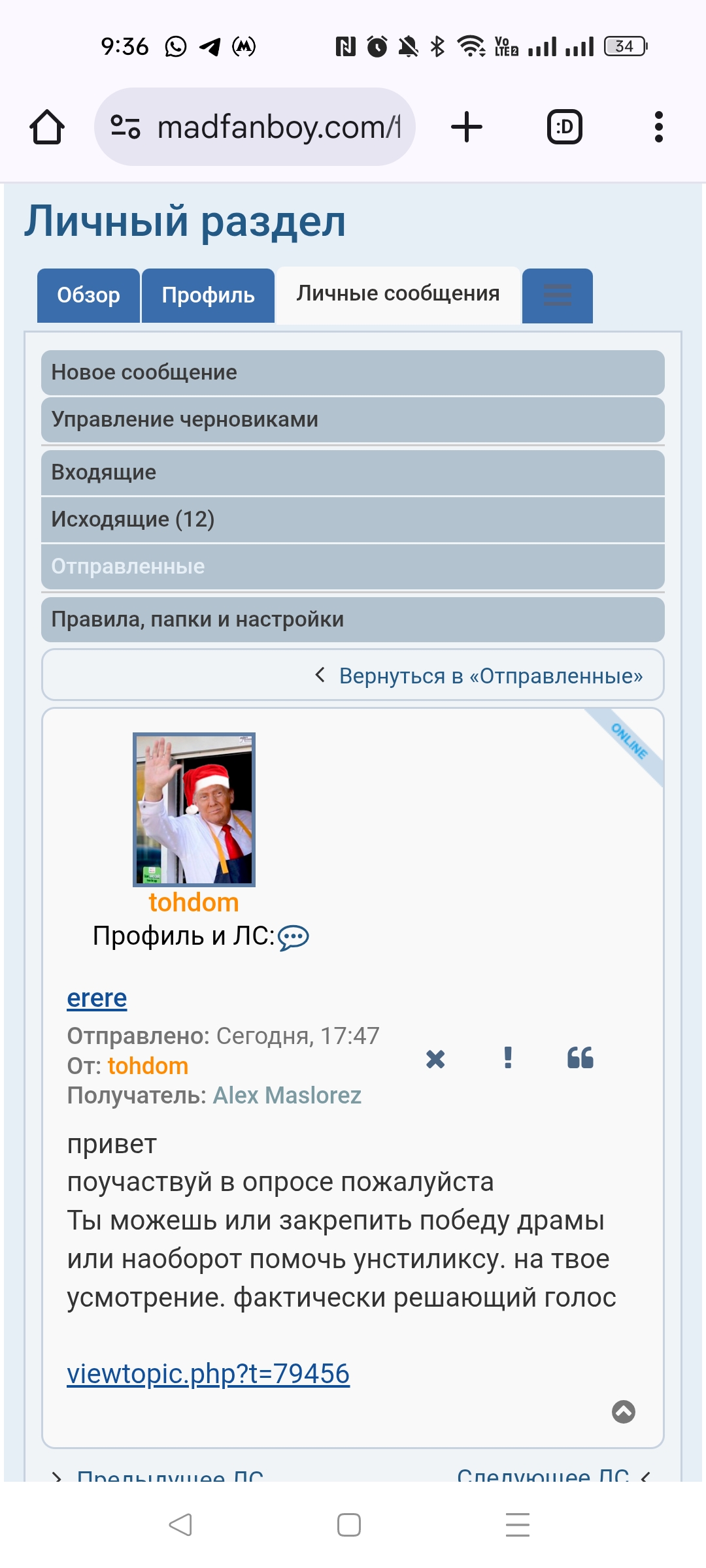 Да, охотно верю тебе, Антошка, что по удачному стечению обстоятельств за несколько часов до выбывания анстиликса, сразу несколько человек, которым было турбо похуй на него и на голосование, внезапно решили проголосовать конкретно за него и привести дело к ничьей. Всё, можешь не пытаться больше выставить себя пай-мальчиком НИПРИДЕЛАХ.tohdom писал(а): 20 янв 2025, 20:56Ну вот все кто голоснул за Унстиликса знают что я их об этом не просил а предлагал сделать им самим выбор.