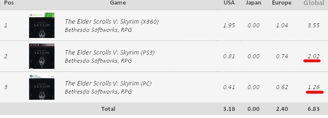 Зато с продаж ПК не надо делится с сони и майкамиs_cream_y писал(а):vadimonster писал(а):s_cream_y, в ритейле скурим в первый день продался 550тысяч копий, в стиме в первый день примерно на 20% больше чем в розницудаже щас скайрим перегоняет на пк продажи пс3