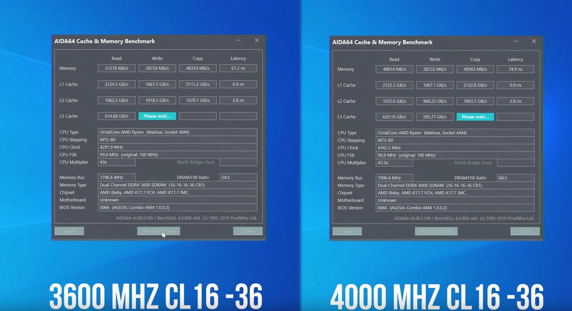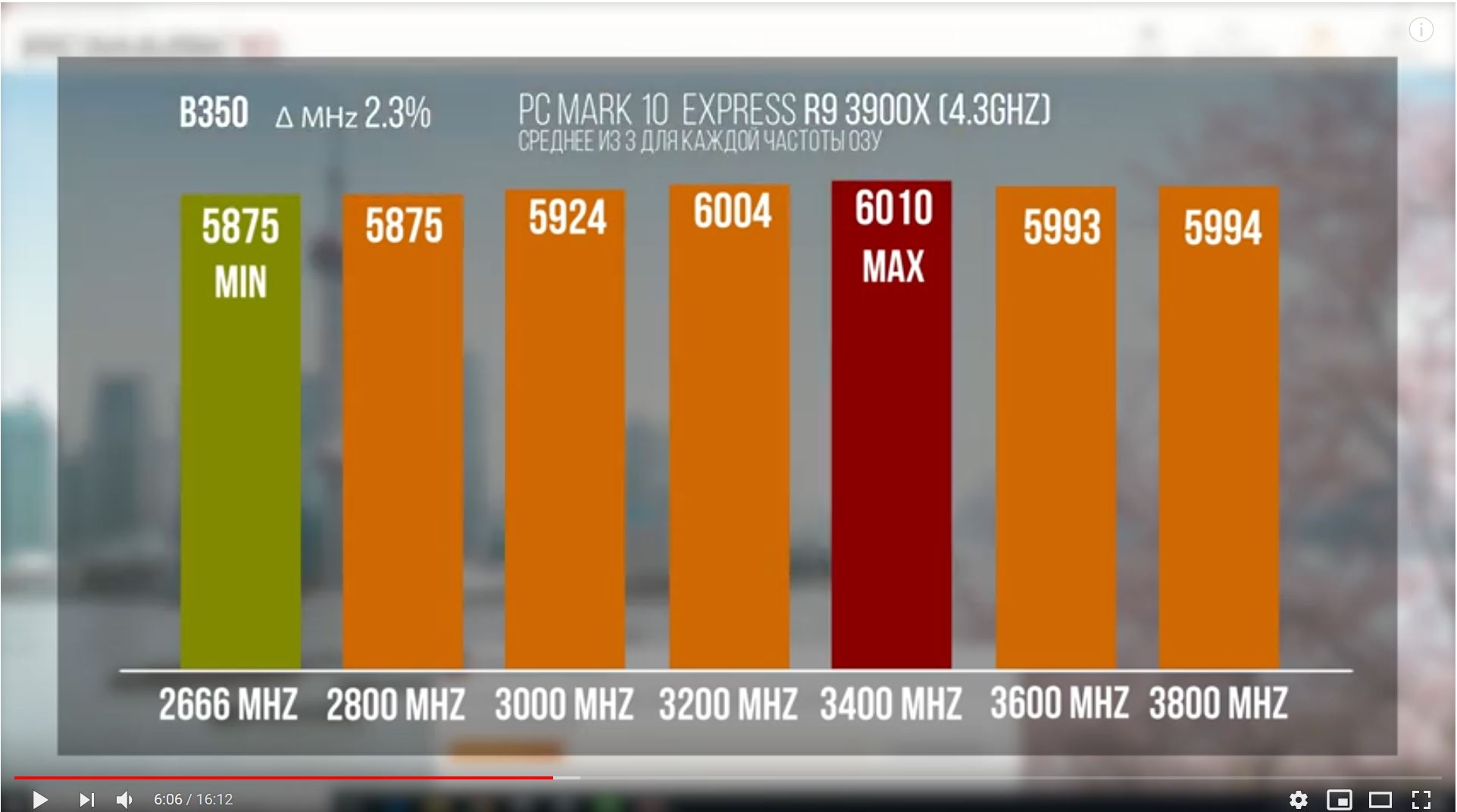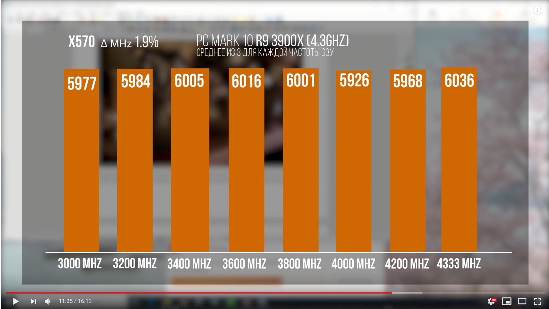 На всех частотах от 2666 до 4333 использовались основные тайминги 16-15-15-32, а вторичные менялись согласно какой-то таблице. Если бы он поставил более крутые тайминги для 2666 магагерц, что-то вроде СЛ11, эта память вполне могла бы даже двух процентов не уступить. Огромный кэш и отвязка частоты шины от памяти очень помогла новым райзенам стать менее зависимыми.
