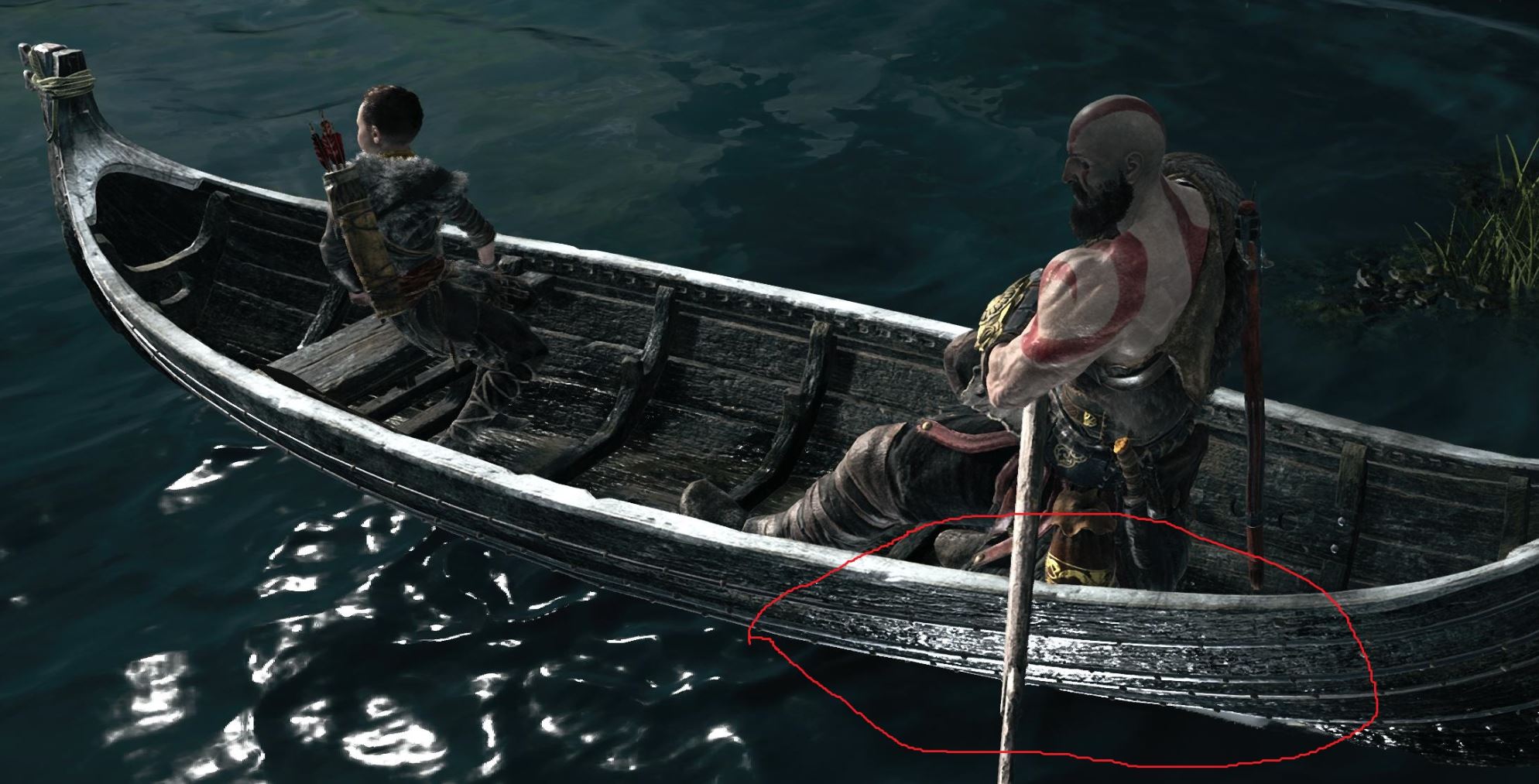 за тем, что по задумке художников вполне заебись водичка и красивые отражения, затенение. Лодка полностью вписывается в сцену