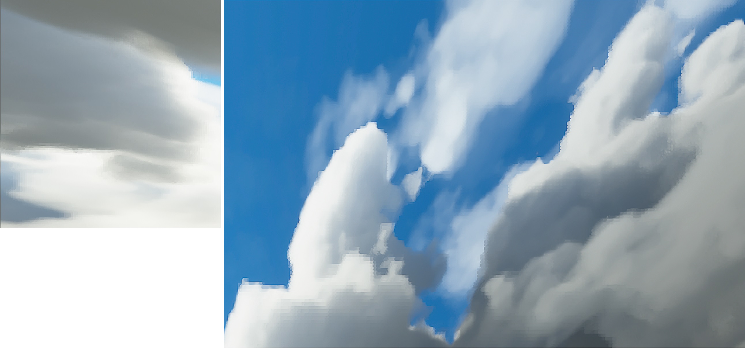 внутри облака или рядом с ним именно и выглядит как плавно рассеивающийся градиент, и в том отличие от спрайта, что градиент очень качественный и анизотропный.