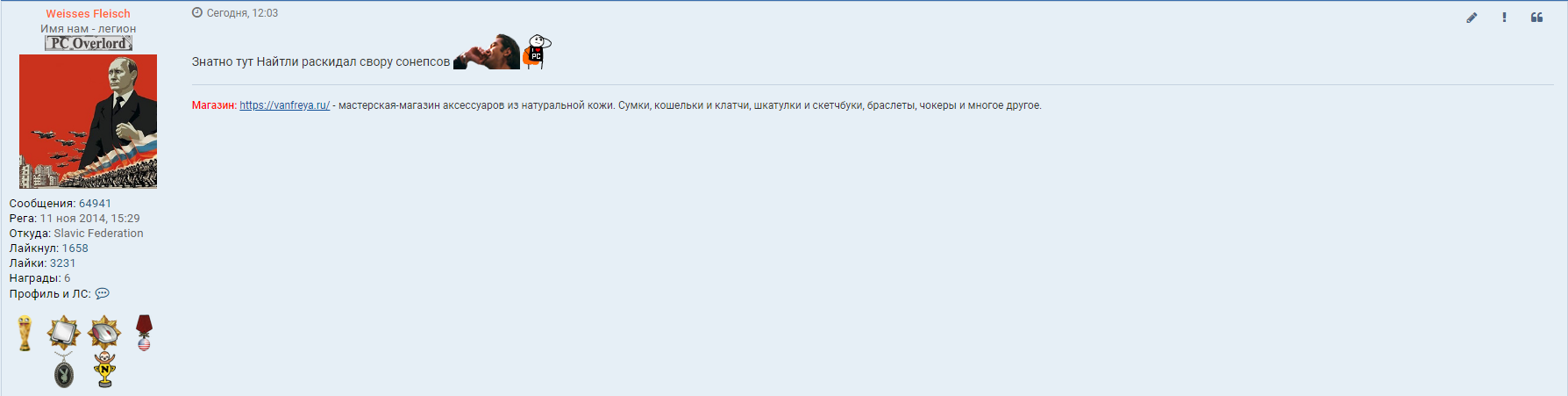metallsatanist писал(а): 18 июл 2020, 22:23на форуме занимаешься балабольством ради отстаивания членства в группе рыжих пк-собак