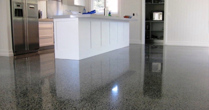 Это мрамор под бетон, на отражающие поверхности это не влияет. Если бы это действительно был бетон, то его бы заливали целым контуром, а не делили на плитки.