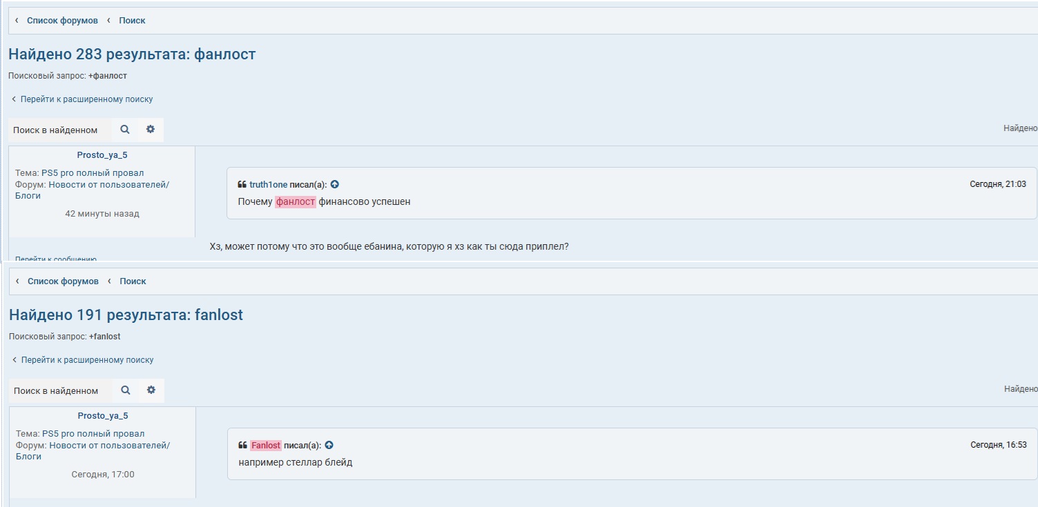 У тебя в первом же сообщении кто-то буквально меня спрашивает про этого Фанлоста ебучего и мне приходится отвечать, а второе свежак, потому что он на форум раз в 100 лет заходит и он опять написал смешную хуйню, на которую мне захотелось ответить