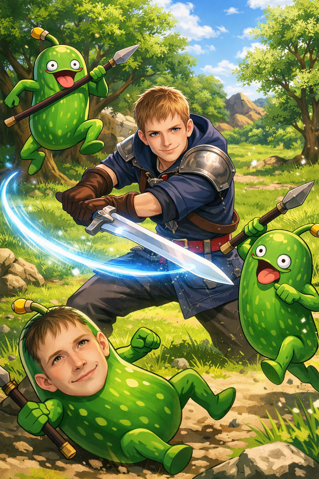 @Bender Rodriguez сможешь сделать смайлик где тохдом прыгает на огурце?