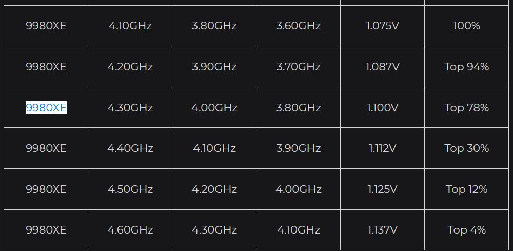 У 9980ХЕ, по его словам, архитектура рассчитана, на 4.4 ггц ( там такой турбо буст ), но почему тогда только 30% гонится до турбо буста по всем ядрам?